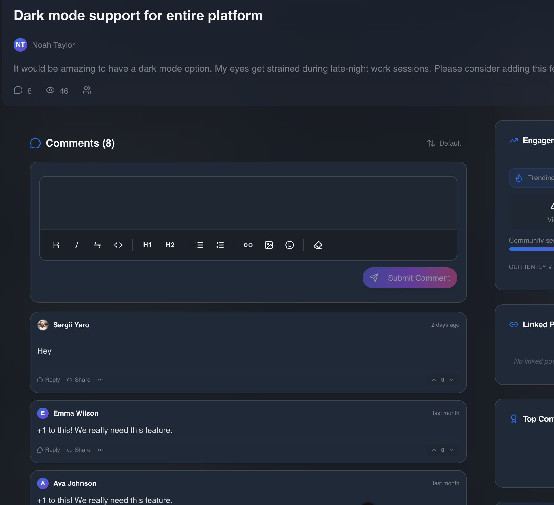 See exactly who is viewing a post right now. Avatars pop in and out in real-time as users browse your board.